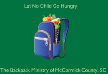 McCormick Backpack is a non-profit ministry that provides weekend food for preschool and school-aged children